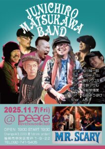 - 11/07(Fri)松川純一郎BAND LIVE!!@livehouse & club Peace(福岡市中央区荒戸)
