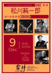 - 11.09(Sun)松川純一郎LIVE!!@Live bar雷神(佐賀)